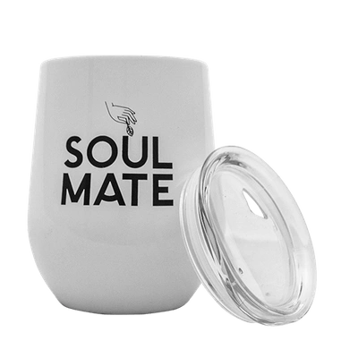 TermoLid – stalowe matero z pokrywką – motyw Soul Mate (biały) – 350 ml