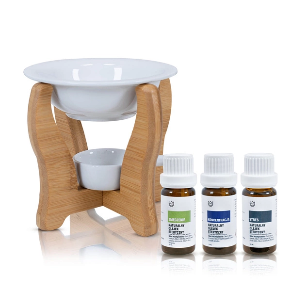 Zestaw do aromaterapii: naturalne olejki eteryczne + kominek