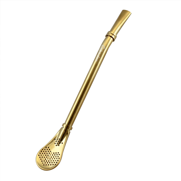 - Bardzo starannie wykonana bombilla ze stali nierdzewnej, lekko zakrzywiona, o długości 15,5 cm. Posiada element filtrujący w postaci sitka. Taka prosta konstrukcja umożliwia dobre filtrowanie i bezproblemowe picie.